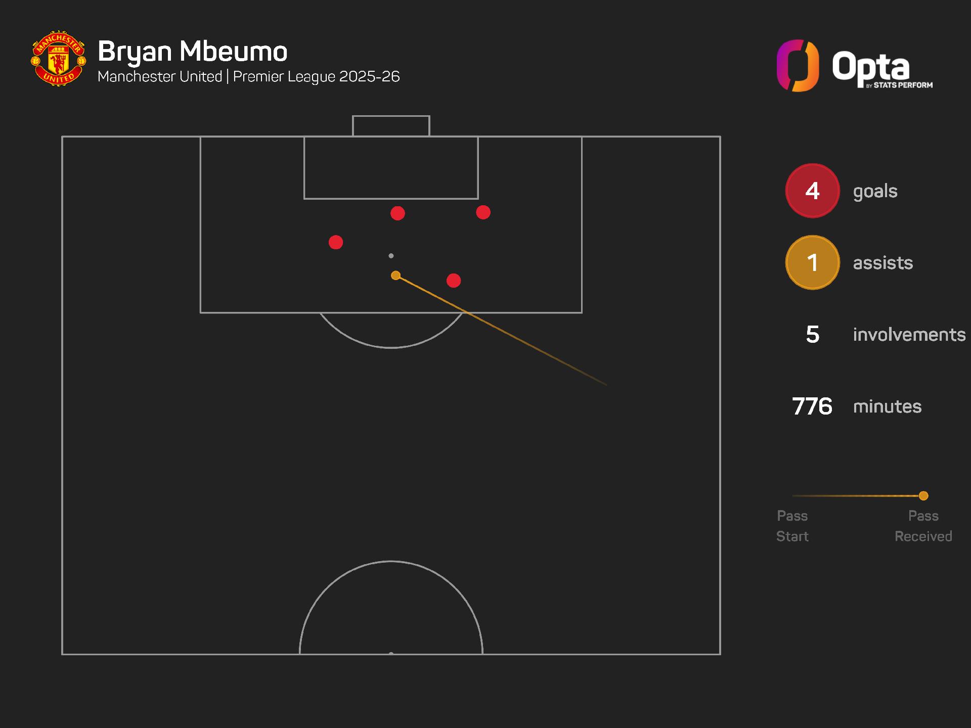 Indeed, he has now scored or assisted in each of his last three games for United (three goals, one assist), continuing his early-year form from his time at Brentford.