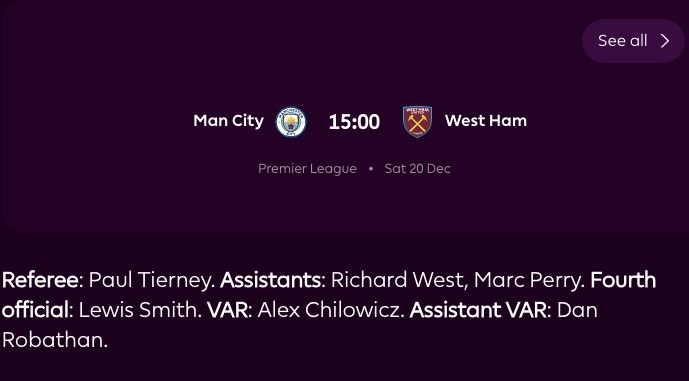 (注:保罗-蒂尔尼此前已转为全职VAR,不再主哨,或许是英超官网出错)