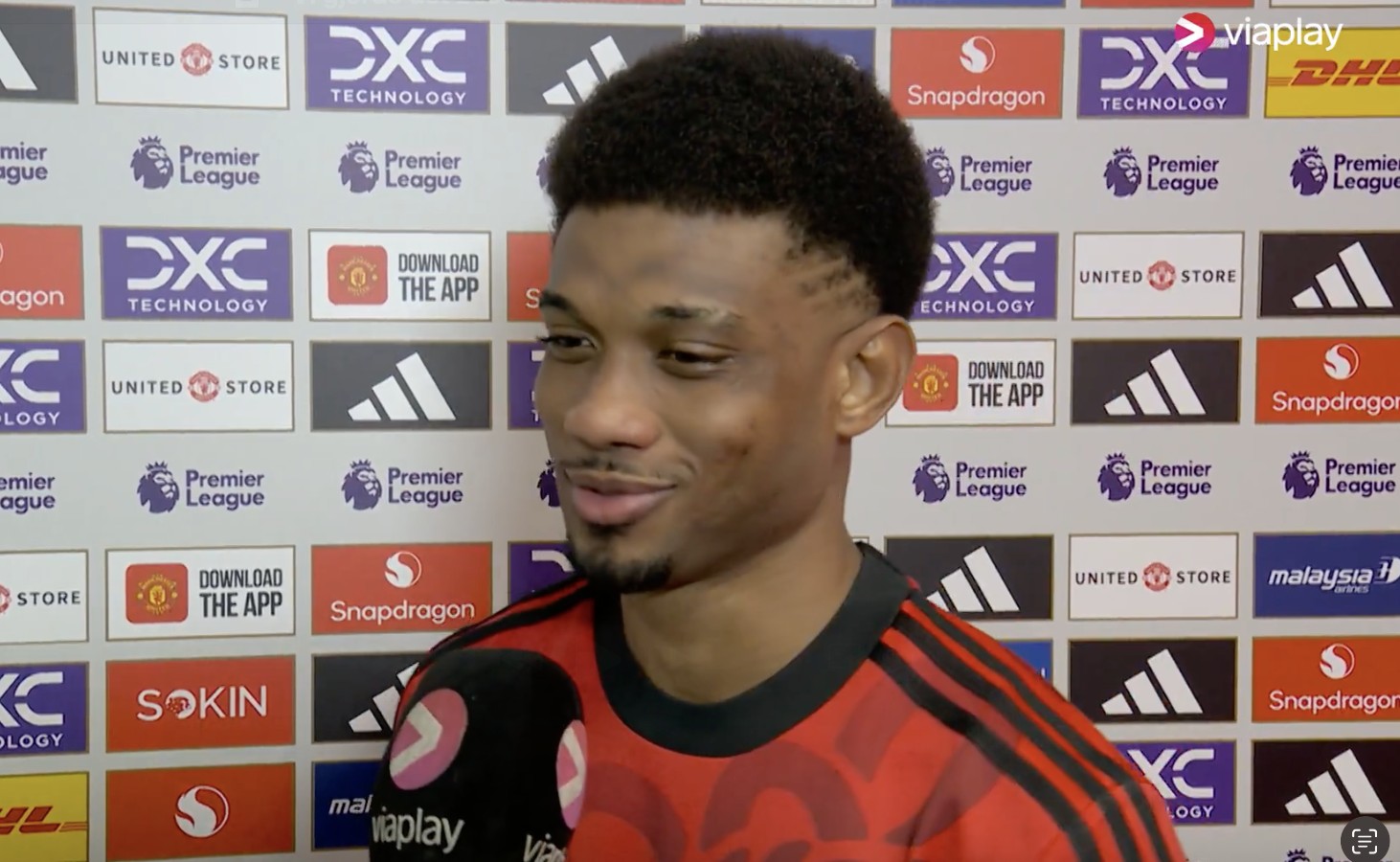 英超第16轮,曼联主场4-4战平伯恩茅斯,赛后,此役打入一球的曼联前锋阿马德-迪亚洛接受了Viaplay Fotball的采访。
