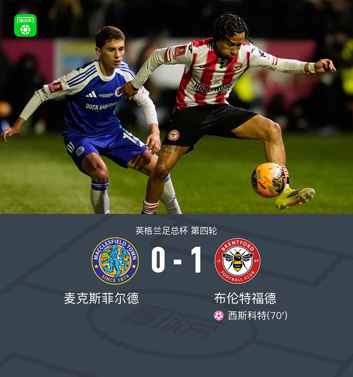足总杯布伦特福德1-0麦克斯菲尔德晋级,西斯科特自摆乌龙