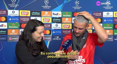 欧冠1/8决赛首回合,马竞主场5-2战胜热刺,格列兹曼在接受TNT体育巴西频道赛后采访时被问及菲利佩。