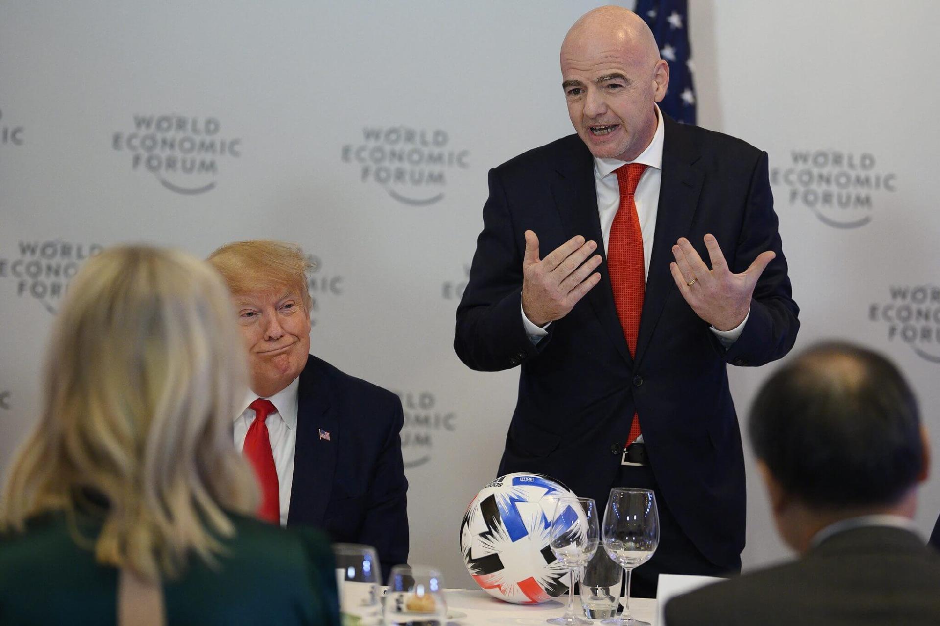 但这些,不过是冰山一角。早在2020年达沃斯世界经济论坛期间,因凡蒂诺便通过2026年世界杯北美申办流程与特朗普结识,随后还特意介绍特朗普向全球顶尖CEO们发表演讲。