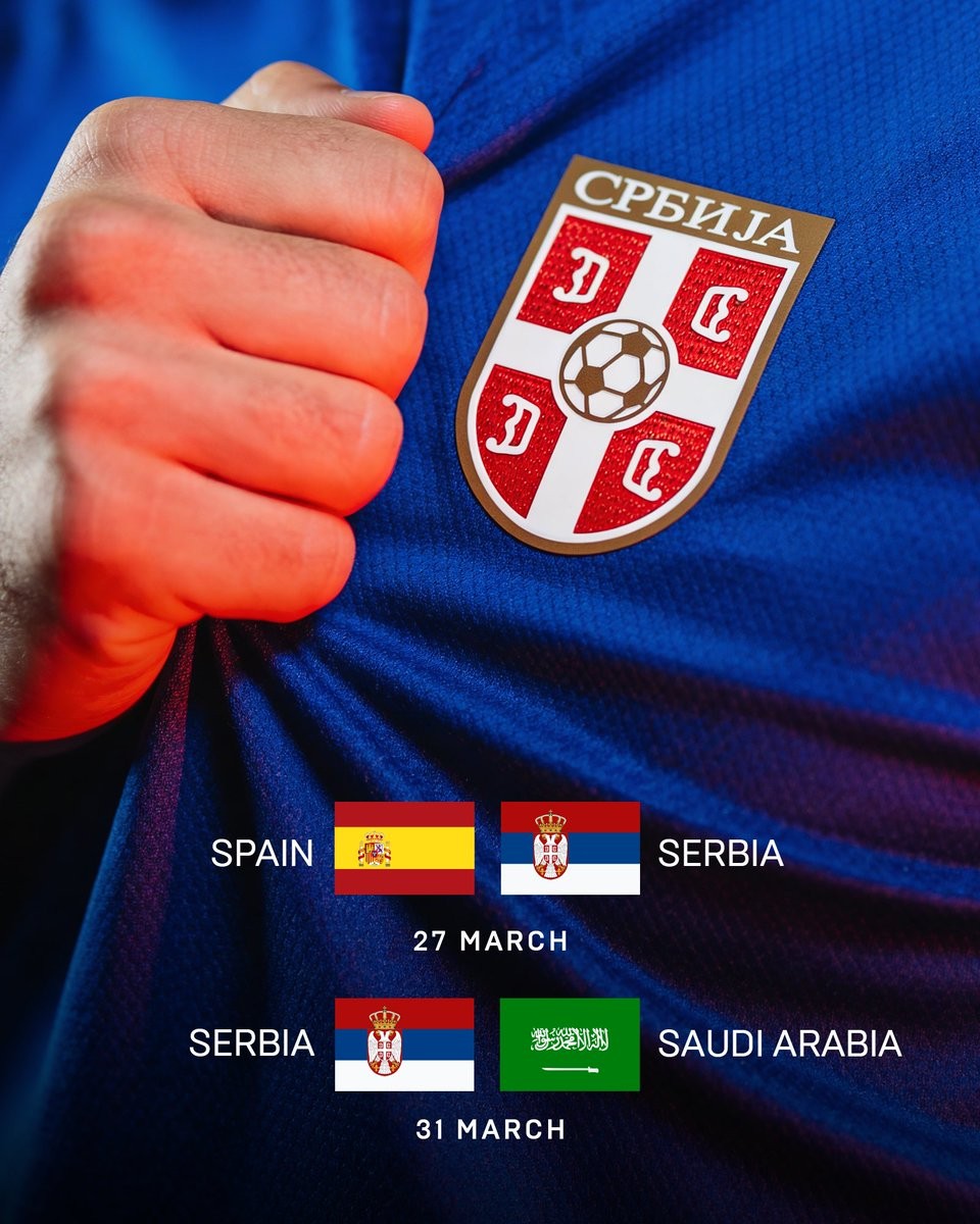 据塞尔维亚足协方面消息,按照新的计划,塞尔维亚将在3月27日客场挑战西班牙;四天后的3月31日,塞尔维亚还将回到主场迎战沙特阿拉伯国家足球队。