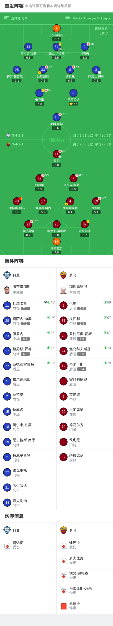 罗马客场1-2遭科莫逆转,迭戈-卡洛斯制胜,马伦点射破门