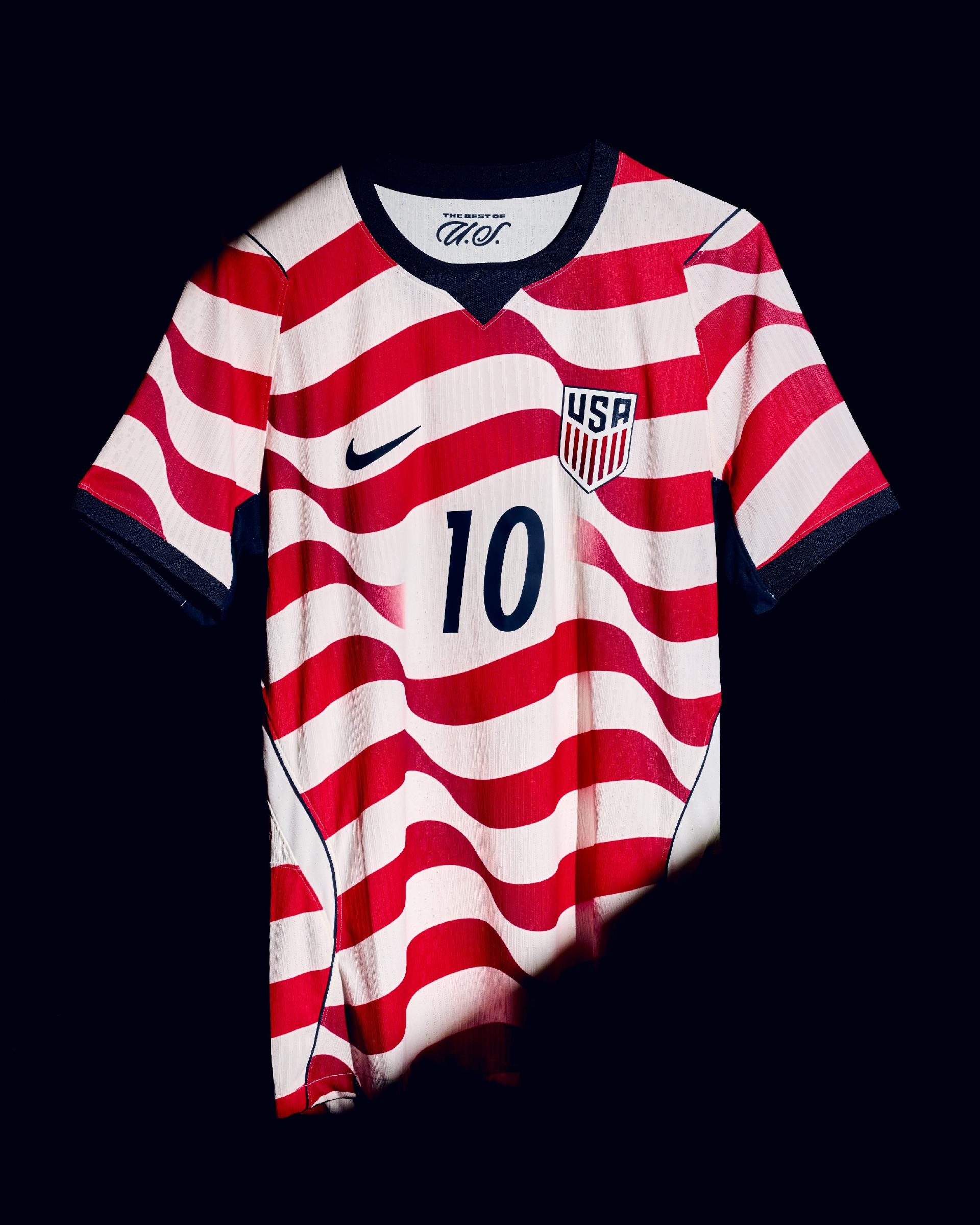 美国队世界杯主客场球衣发布:主场球衣为白底红色波浪纹