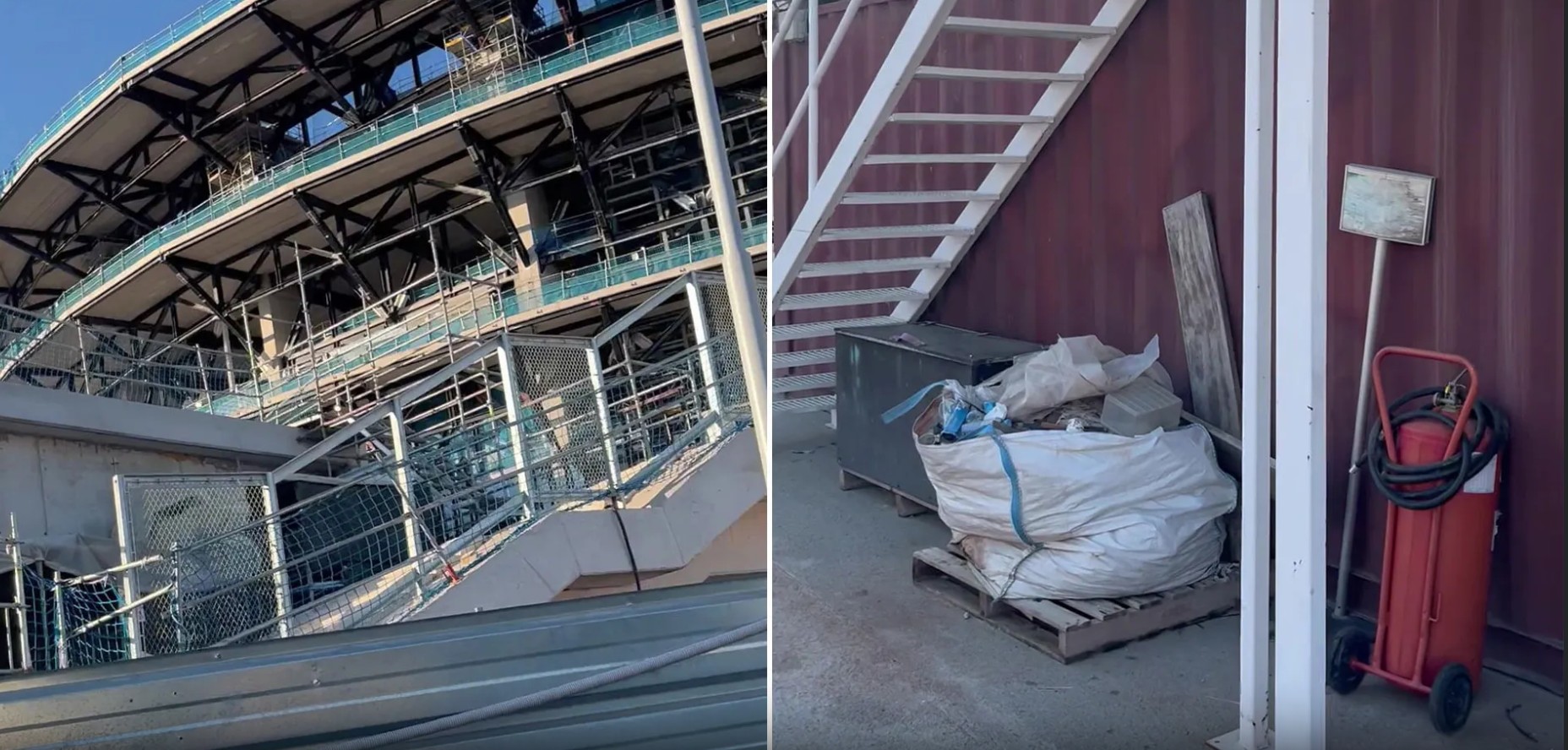 在欧洲冠军联赛八分之一决赛次回合对阵纽卡斯尔联的比赛前,媒体实地探访发现,部分观众可进入区域内仍能看到施工设施,球场顶层看台也尚未完工,场内甚至还能看到起重机运作。