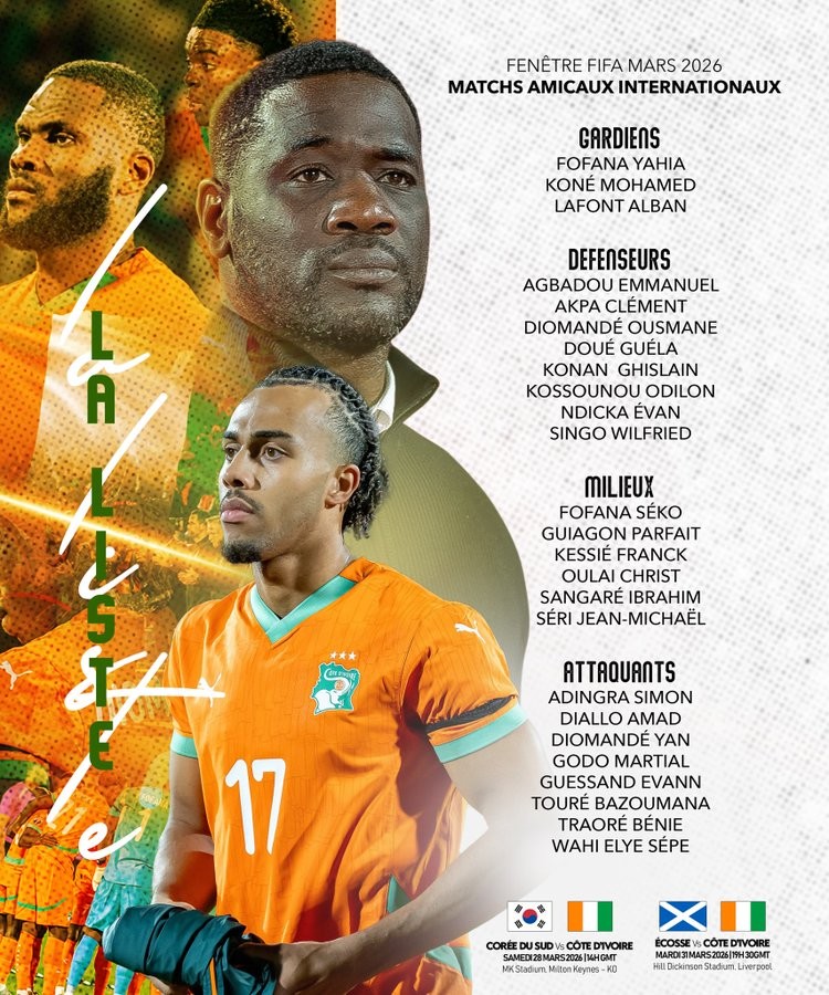 北京时间3月18日,科特迪瓦国家队公布最新一期大名单,其中阿马德、扬-迪奥曼德在列,尼古拉-佩佩再次落选。