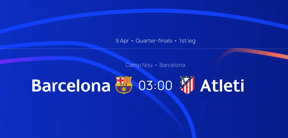 欧冠1/4决赛对阵出炉,马竞与巴萨将上演西甲内战,其中马竞先客后主。