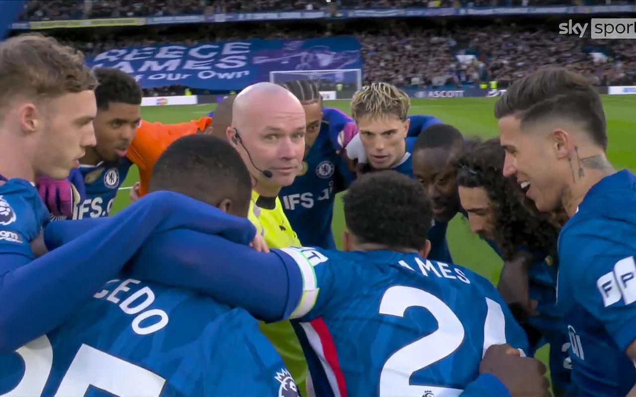 报道称,切尔西球员在上周六对阵纽卡斯尔联比赛开球前,被警告不要在中圈围着皮球站成一圈,但他们仍然这样做了,把裁判保罗-蒂尔尼包围在中间。