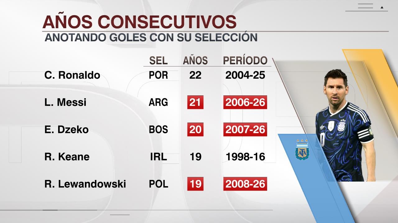 本场比赛第43分钟,梅西为阿根廷国家队打进1球,据统计,这是梅西连续第21年为阿根廷国家队破门。