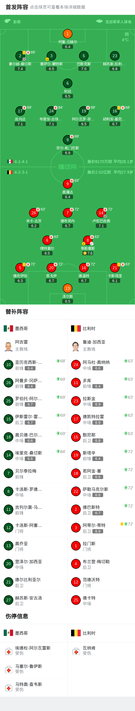 墨西哥1-1比利时,豪尔赫-桑切斯破门,卢克巴吉奥救主