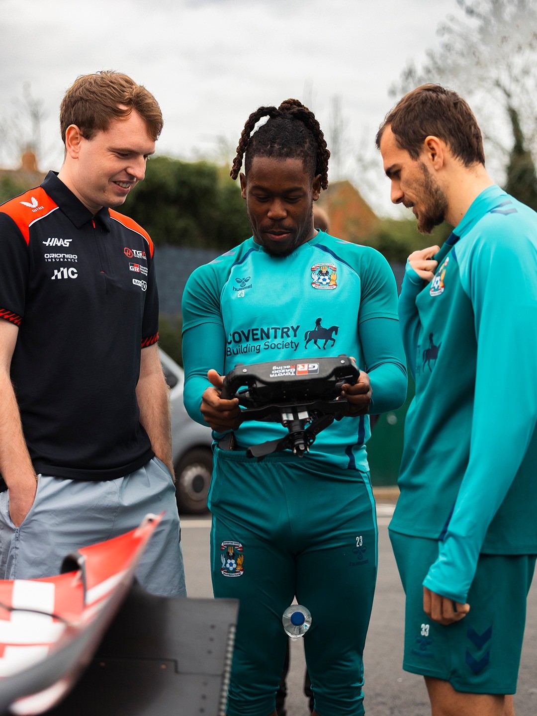 车队领队小松礼雄还亲自上场“秀脚法”,体验了一把足球训练;而考文垂球员们则对赛车兴趣十足,纷纷与赛车合影打卡。