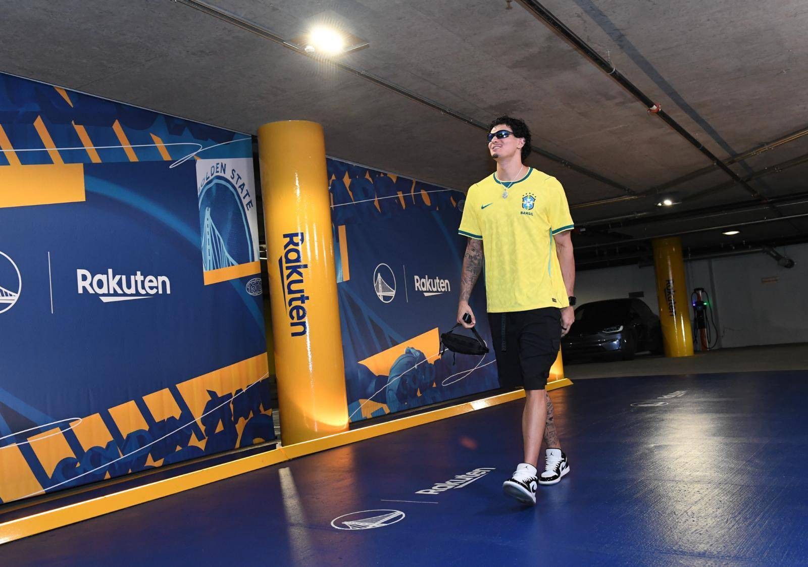 心系祖国,勇士后卫吉-桑托斯身穿巴西男足世界杯球衣亮相