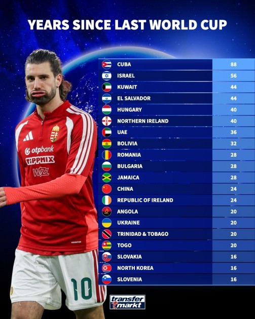 Transfermarkt lists longest World Cup absences: Cuba leads with 88 years