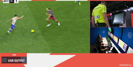对话中,VAR建议主裁判进行回看以评估是否取消红牌,VAR称:“我认为巴塞罗那球员以正常方式处理球,属于正常的接触,他先是传球,随后自然而然地与马竞球员发生了接触。”