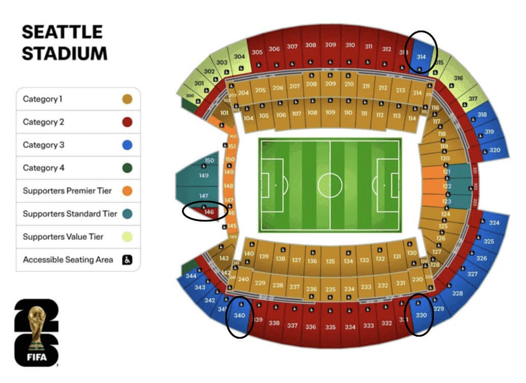 因此,许多球迷感到困惑——尤其是在国际足联并未提前公布球场座位图或票价的情况下。这些信息最初只在去年10月向抽中预售资格的球迷开放。大约两周后,座位图才被发布在一个“球场信息”页面上,但并未通过新闻稿对外公布。