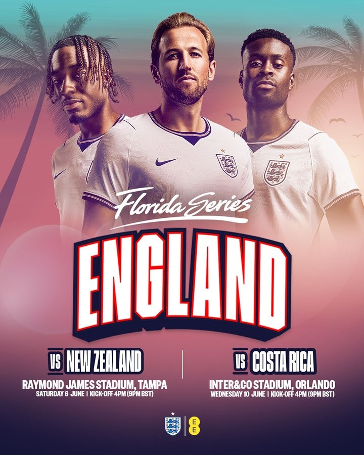 官方:英格兰6月初将在美国与新西兰和哥斯达黎加踢热身赛