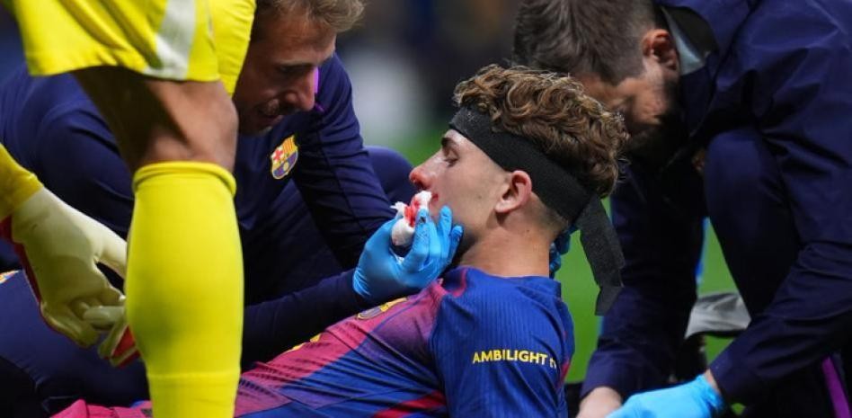 世体:费尔明脸部缝针时剧痛,需要两人搀扶按住才能完成
