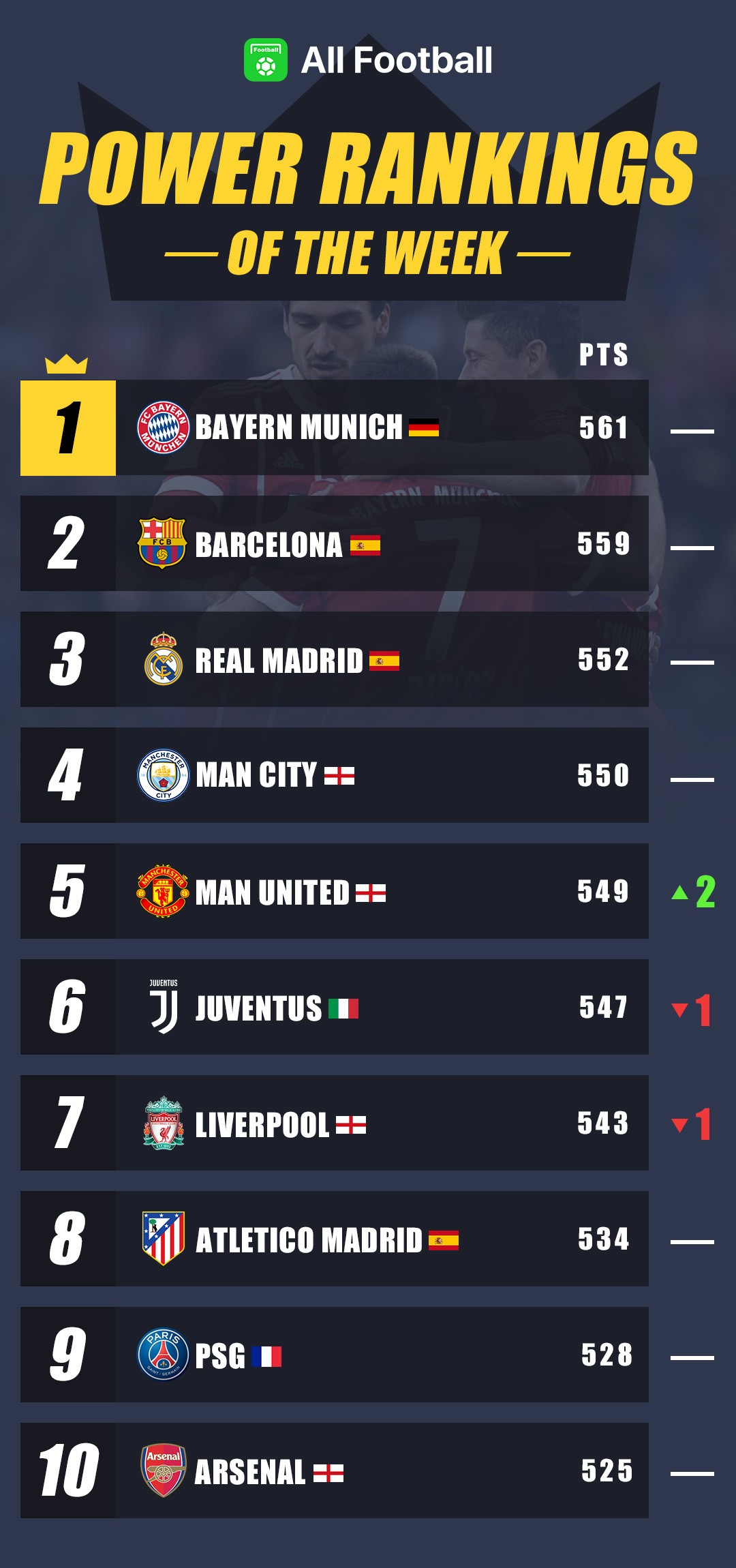 All Football Power Rankings of the Week (Apr 24, 2018): Man Utd surpass Juve & Liverpool