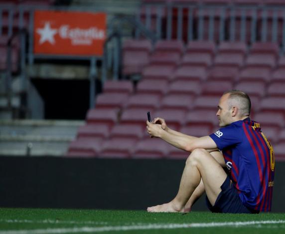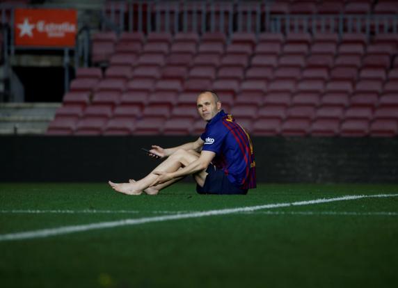 Cerca de la una de la madrugada, Andrés Iniesta ya había atendido a los medios de comunicación en la zona mixta, ese lugar del que nunca despareció ni en las noches más negras. El capitán siempre dio la cara. Y ya con el deber cumplido por última vez, quiso regalarse un momento íntimo para él solo. Y eligió el centro del campo del Camp Nou. Salió del vestuario, en chanclas y con solo un teléfono móvil como acompañante.