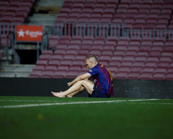 ‘Selfies’ de Iniesta en la soledad del Camp Nou