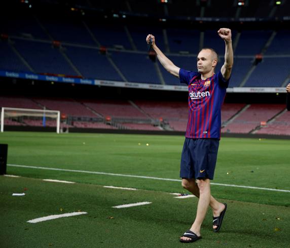 Fue su último recorrido con la camiseta del Barça, la de la próxima temporada, que ya verá seguramente desde Japón. Mirando al cielo, suspirando de nuevo y tomando aire tras unas semanas finales de emoción máxima. Y ya cuando había rebasado la línea de banda, a dos metros de las escalerillas, alzó los brazos en señal de victoria. Andrés, don Andrés, se va por la puerta grande.