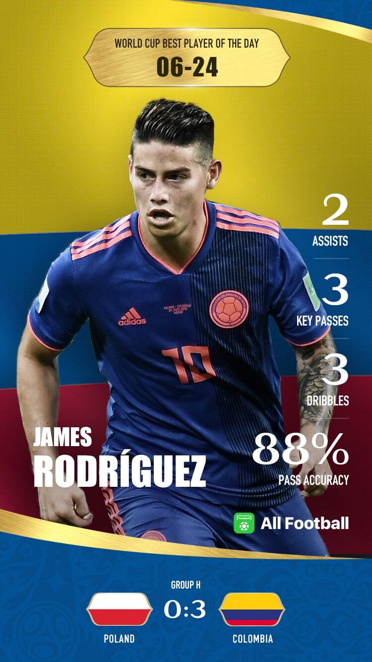 James Rodriguez shined to help Colombia grab a 3-0 victory over Poland.