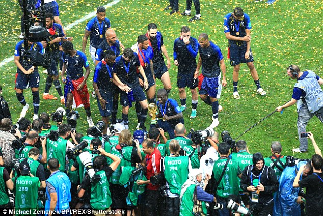 After their greatest ever triumph, Paul Pogba, Benjamin Mendy and Ousmane Dembele were seen serenading Kante with a song as they celebrated in the dressing room following the final whistle.