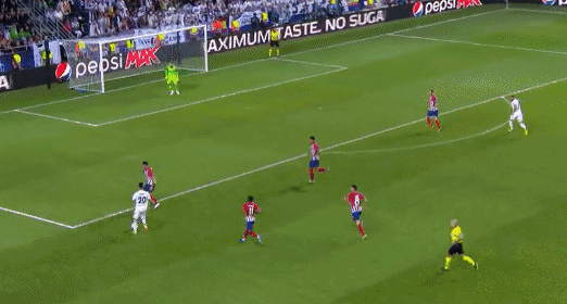 CLOSE! Nearly a second for Real in the space of two minutes! Asensio drifts forward with the ball, looks to curl one into the far post from 20 yards, but it goes just wide of Oblak's left-hand post.