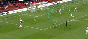 GOALLLLLLLLL!!!! AUBAMEYANG NOTCHES HIS SECOND!! 3-0!!!! Mkhitaryan feeds Aubamenyang on the edge of the box and looks for the return. The striker keeps the ball and has a slice of fortune as Chesnakov fails to make the interception. Aubameyang makes the most of the error, hitting a strike towards goal that he bends around Shust into the bottom corner. A precise finish from the Gabonese.