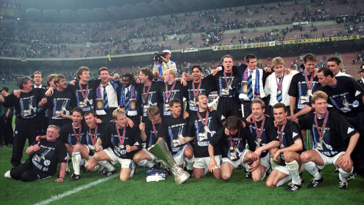 Fast forward three quarters of a century from Kuzorra's heyday and Schalke are on the brink of winning a first ever European competition. Under Huub Stevens, The Royal Blues get past Valencia and Tenerife before facing Italian giants Inter Milan in the final. They win the first leg 1-0 courtesy of a Marc Wilmots goal and lose the second leg at the San Siro by the same scoreline, but four successful penalties out of four and a save from goalkeeper Jens Lehmann in the shootout was enough to win the trophy and cement Stevens’ status as the club’s “Jahrhunderttrainer”, “Coach of the Century”.