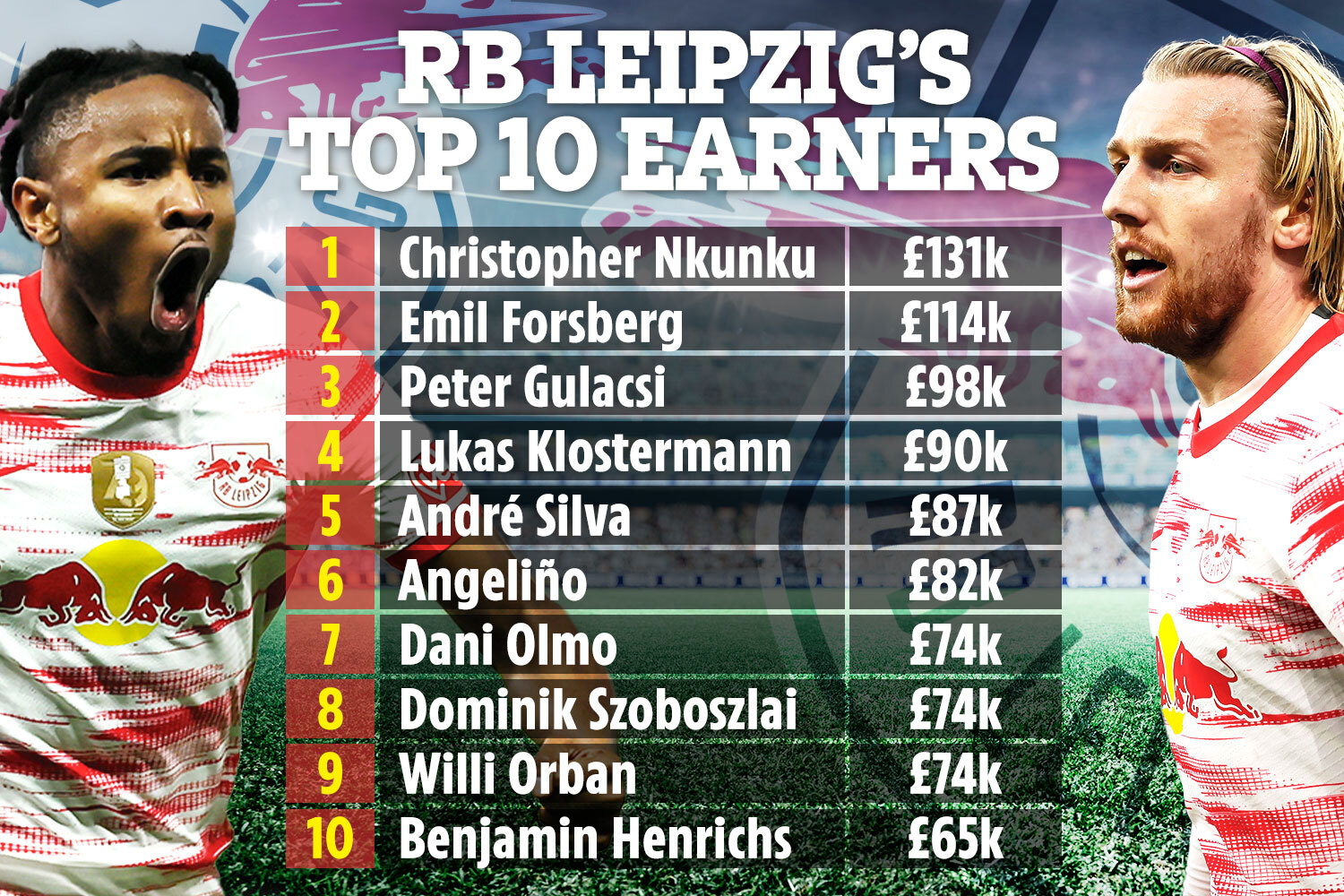 MANCHESTER UNITED transfer target Christopher Nkunku leads the way in RB Leipzig's wage bill.
