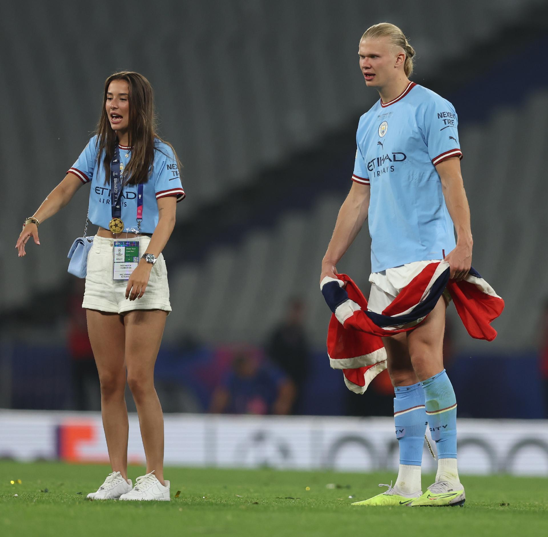 Isabel has watched Haaland win the Champions League and Prem title - and celebrated by wearing his winning medals afterwards.