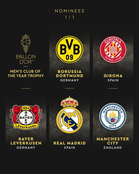 Club of the Year nominees: Real Madrid, Man City, Leverkusen, Dortmund & Girona