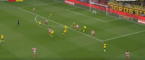 第62分钟,进攻有利,瑞尔森接布兰特妙传后破门,多特客场1-2扳回一球