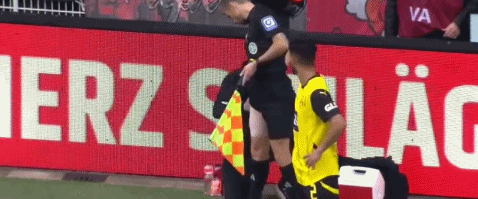 第37分钟,边裁大腿拉伤,经过治疗可以继续执法