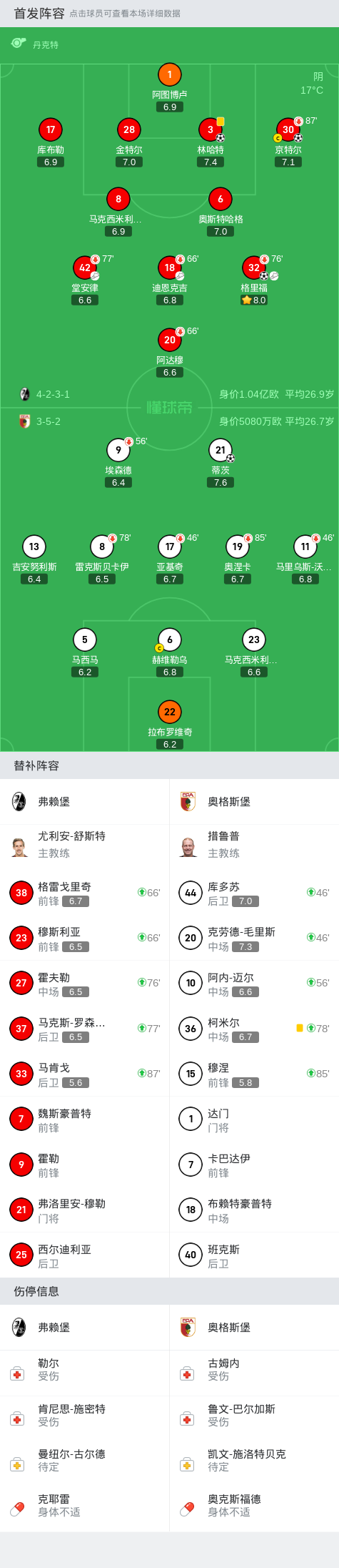 第65分钟,奥格斯堡球员克劳德-毛里斯助攻蒂茨打入一球。
