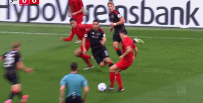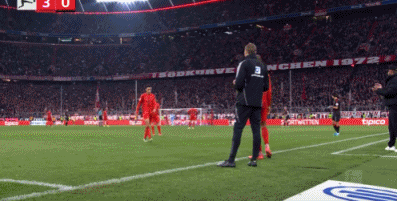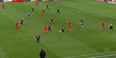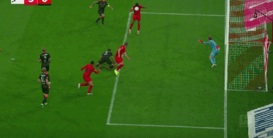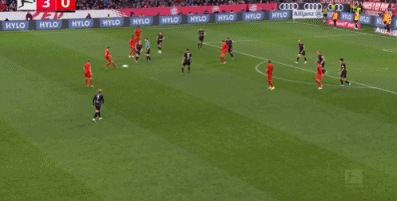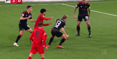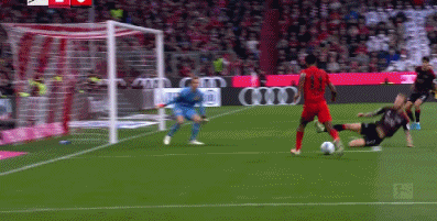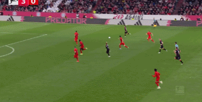 第52分钟,格雷罗挑传,科曼头球横传,凯恩抢点破门,拜仁3-0
