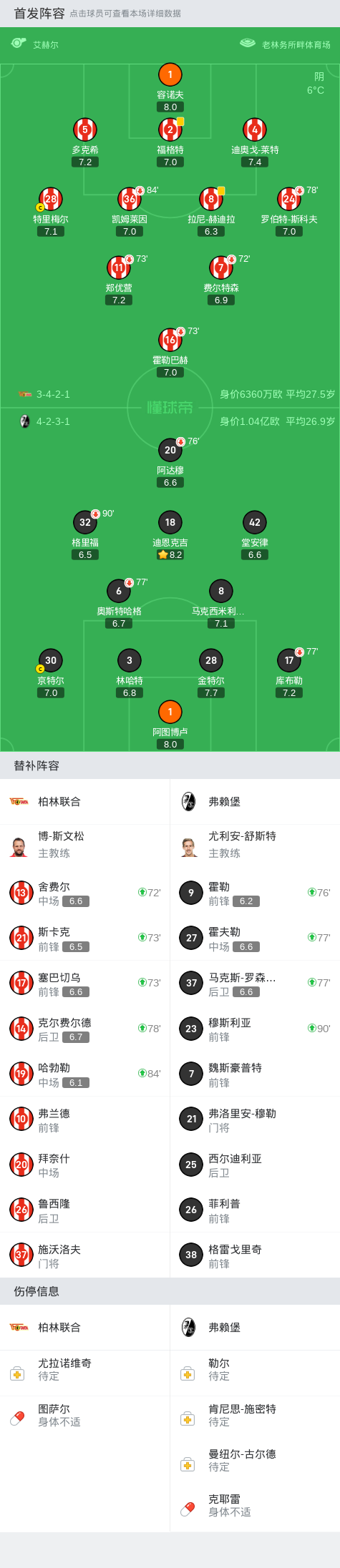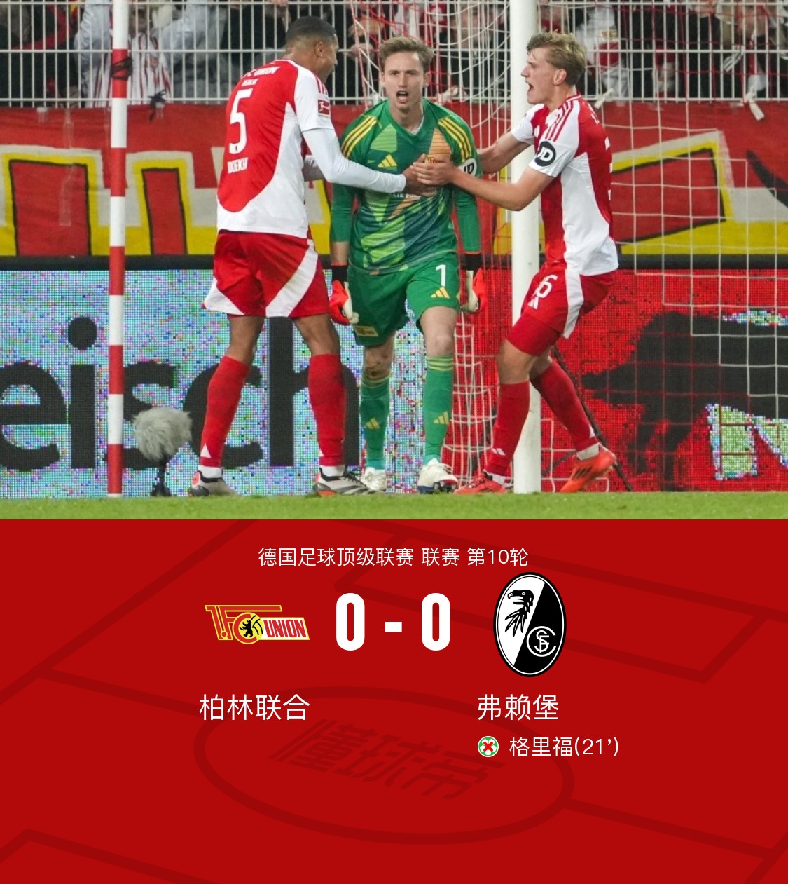 柏林联合0-0弗赖堡,格里福失点,阿达穆门前推射造险