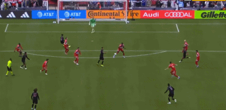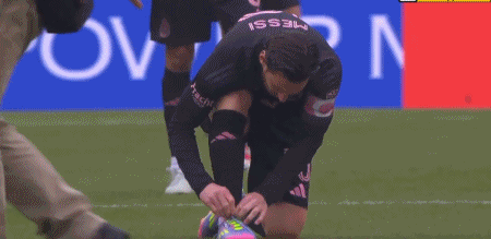 第62分钟,梅西禁区前持球被放倒,迈阿密获得绝佳任意球机会