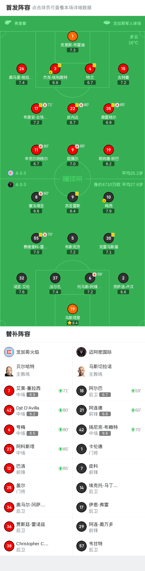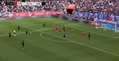 迈阿密国际0-0芝加哥火焰,梅西任意球中柱,苏亚雷斯进球被吹
