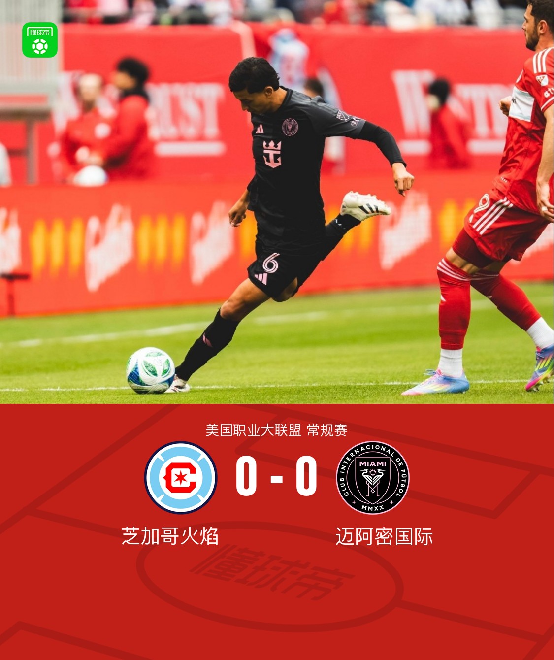 北京时间4月14日,美国职业大联盟常规赛,芝加哥火焰主场迎战迈阿密国际。全场比赛双方均未能取得进球,最终芝加哥火焰与迈阿密国际以0-0的比分握手言和。