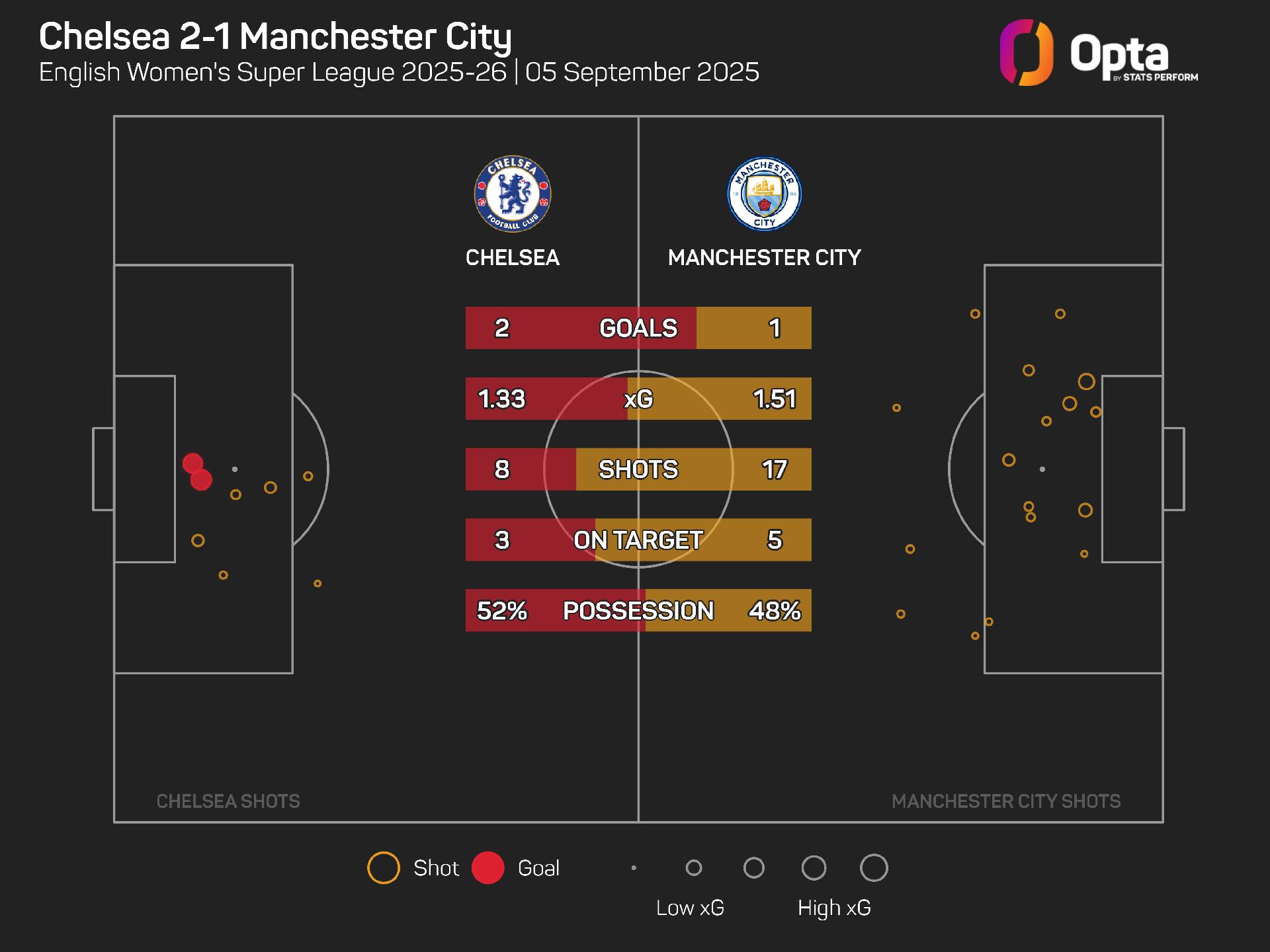 But Sonia Bompastor's side managed just eight shots in their 2-1 win on MD1, which was the lowest number of attempts that the Blues have managed in a WSL game since February 2021 vs Arsenal (also eight).