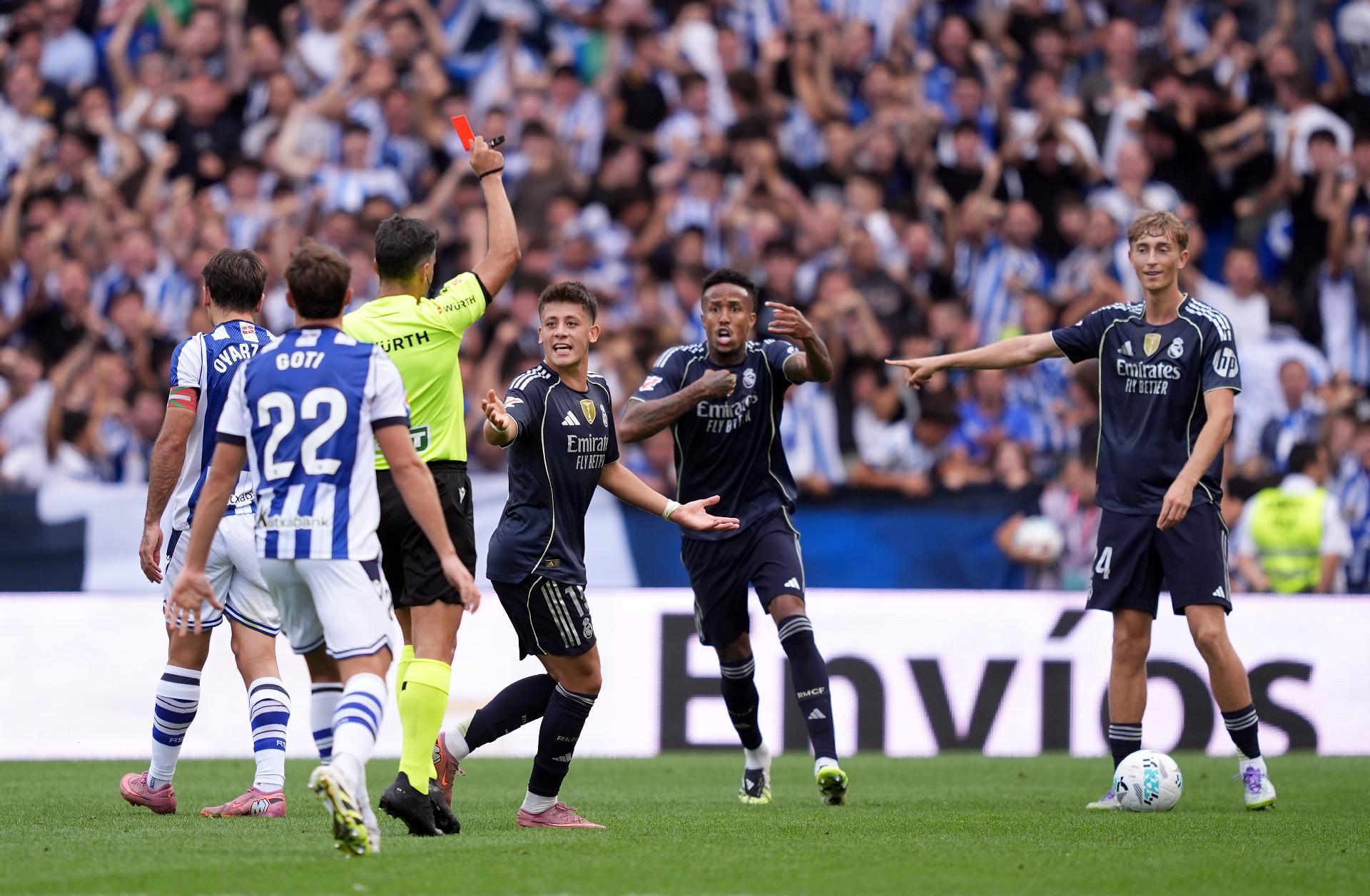 Real Madrid defender Dean Huijsen has been handed a suspension for his red card against Real Sociedad, which sparked controversy over the weekend.