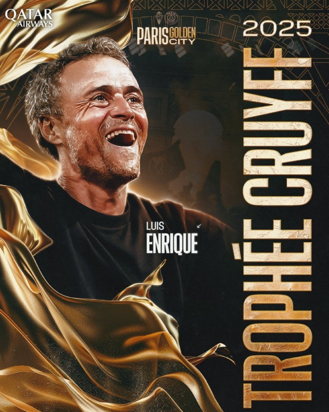 PSG's Luis Enrique wins the 2025 Men's Johann Cruyff Trophy as Men's Coach of the Year
