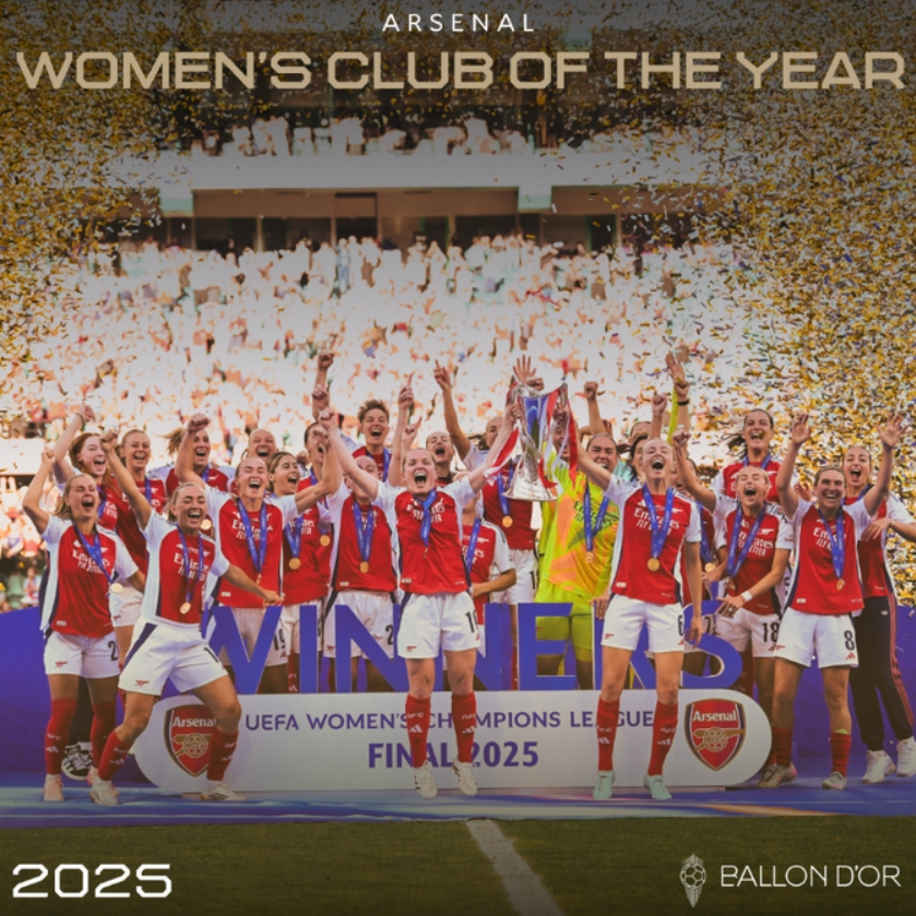 OFFICIAL: Champions League winners Arsenal named 2025 Women's Club of the Year