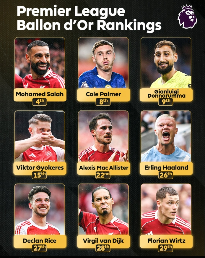 Premier League stars in 2025 Ballon d’Or: Salah 4th, Palmer 8th, Donnarumma 9th