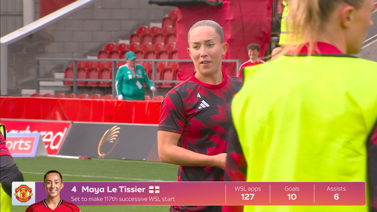 Le Tissier made her 70th consecutive start for United in a 2-0 victory over Liverpool on Sunday, the joint-longest run of starts by an outfield player for one club in the competition's history. Dating back to her time at Brighton, she has been named on a staggering 117 consecutive teamsheets.
