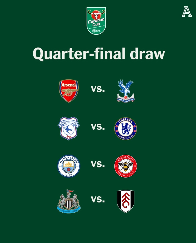 Carabao Cup quarter-finals draw: Arsenal v Crystal Palace, Man City v Brentford