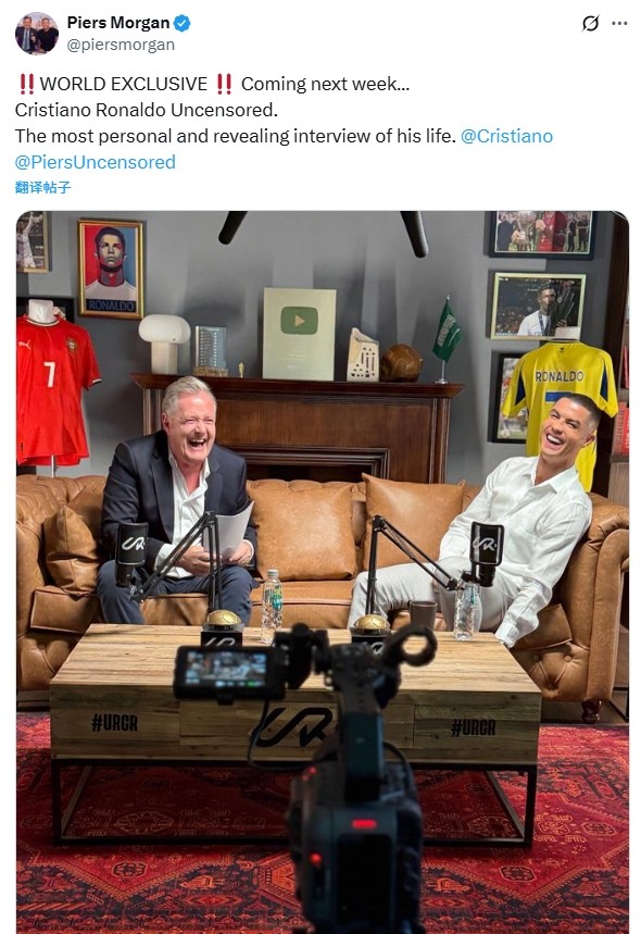 Piers Morgan announced on social media that he will release an exclusive interview program with Portuguese superstar Cristiano Ronaldo next week.